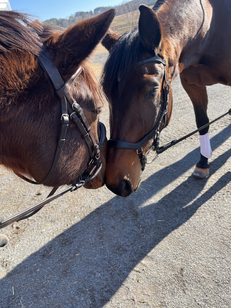 Once his left front shoe was replaced, I was thrilled to get back in the saddle and head out on new adventures. We started hacking with some of the other riders at the barn, forming a small group for rides. I’m so grateful to be making new friends at the barn and meeting such kind, welcoming people. Hanz has even made a best friend: Alfie, a 5-year-old Thoroughbred on the property. The two of them seem to have a fantastic connection, and we hack together as much as possible. It must be a Thoroughbred thing—they seem to work well together and enjoy the time spent exploring the “trails.”