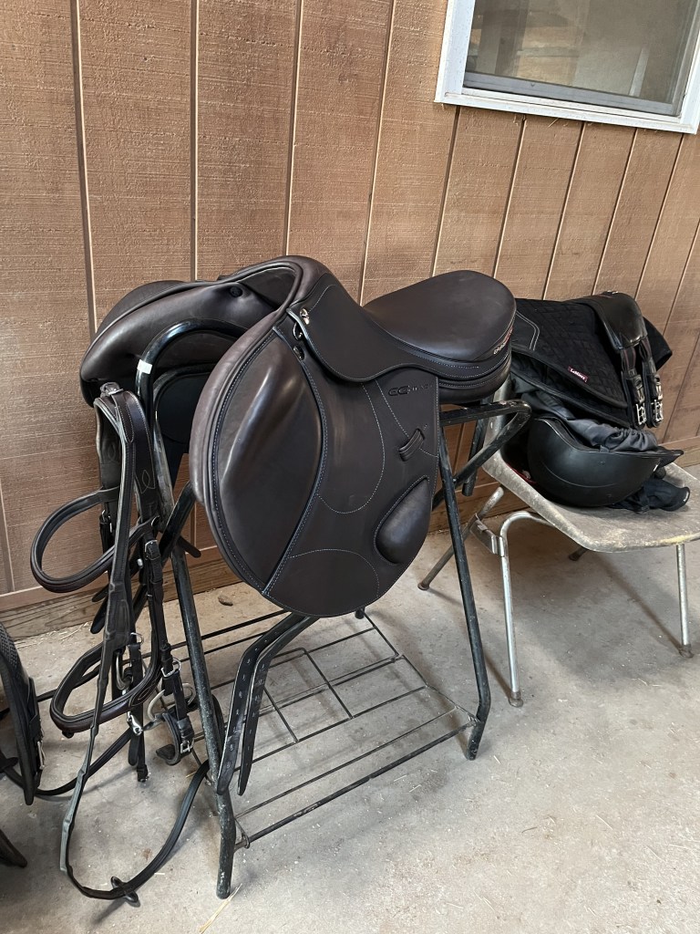 All in all, it was an incredibly fun and educational experience that I enjoyed immensely. I haven’t made a final decision yet regarding the saddle, as it’s a significant investment, but while I take the time to decide, Courtney left me with a fantastic demo saddle that I liked the most. This particular saddle is a monoflap event saddle with a 17-inch seat and a slightly narrower tree. I’m currently demoing it to see if I truly love the brand and want to move forward with an order. I couldn’t be happier or more excited about how things are coming together so far.
